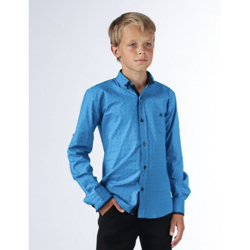 Рубашка для мальчика Bold с длинным рукавом трансформер, хлопок, Голубой, 134