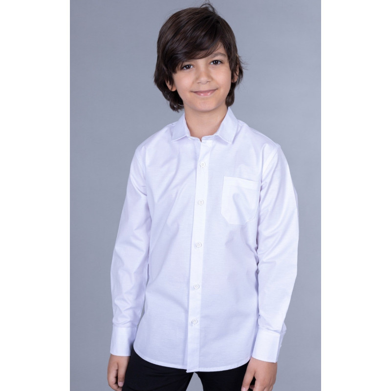 Рубашка BLUELAND белая с длинным рукавом для мальчика 5-9 лет арт.399, Белый, 128
