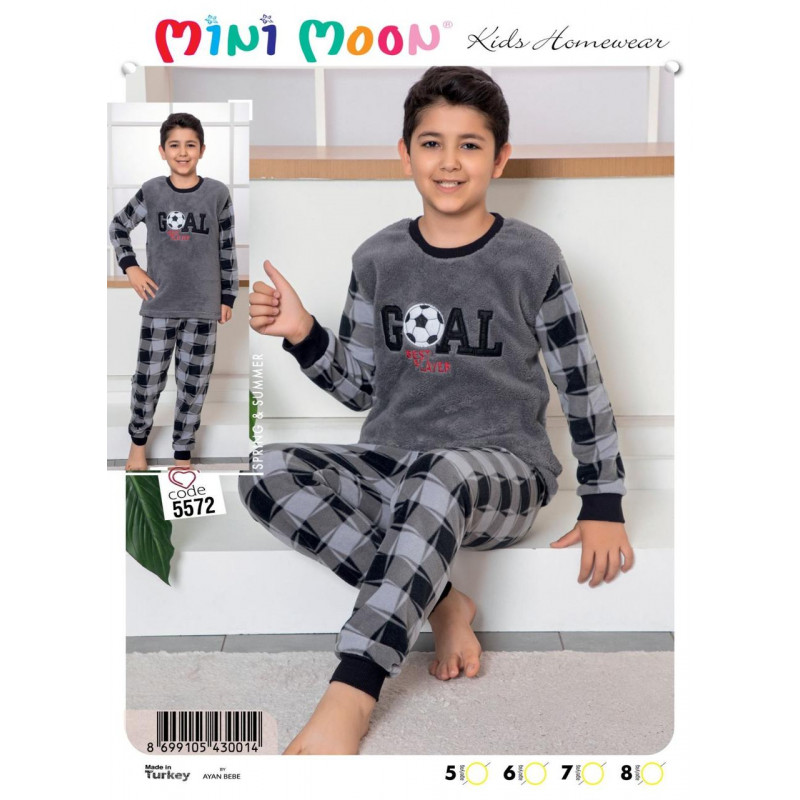 Пижама теплая MINIMOON для мальчика 4-8 лет флис арт.1028, Цвет Серый, Размер одежды подросток (по росту) 116
