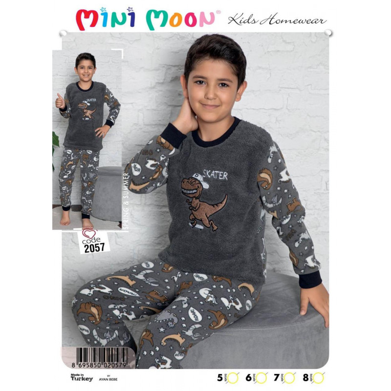 Пижама теплая MINIMOON для мальчика 4-8 лет флис арт.1029, Цвет Серый, Размер одежды подросток (по росту) 116