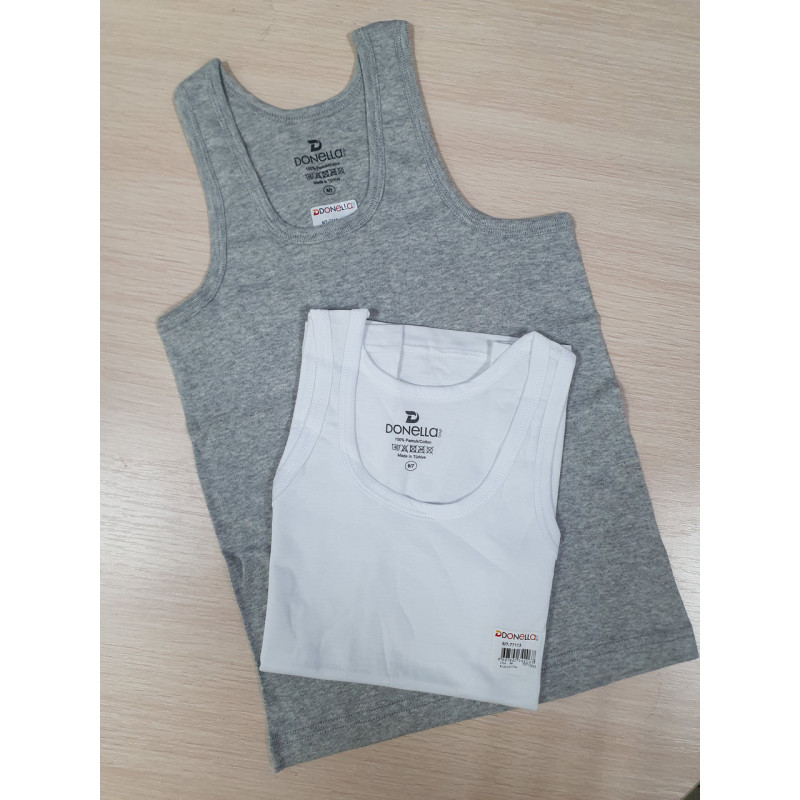 Якісна майка турецької фабрики Donella завоювала любов наших клієнтів, завдяки міцному та м'якому тканині (склад 100% бавовна). Витримує багаторазове щоденне прання в пральній машині без змін зовнішнього вигляду, а це основний показник для натільної білизни.