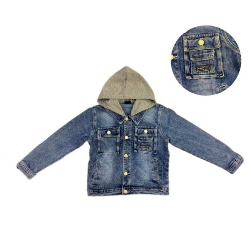 Крута джинсова куртка для хлопчика виробництва Польщі. Трикотажний капюшон, який за потреби можна відстебнути. Джинс вільного пошиття, якісність піджака чудове.