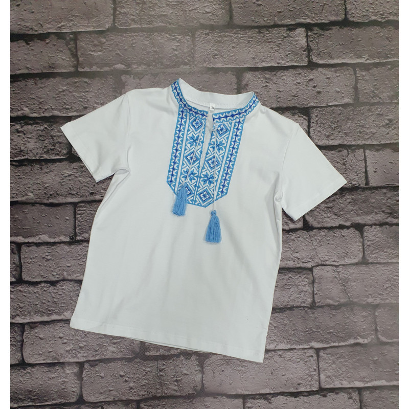 Давно шукаєте гарну вишиванку для своєї дитини? У нас у магазині ви прямо зараз можете вигідно купити традиційну українську вишиту футболку дитині за доступною ціною. На Вас чекає великий вибір красивих речей, але вони також практичні та виготовлені з натуральних тканин. Чудове поєднання якості та краси в кожному виробі. Дитяча білосніжна футболка з вишивкою точно сподобається вам і вашій дитині! Натуральна футболка вишиванка для хлопчика вирізняється фабричною справжньою вишивкою. Одна з основних переваг наших вишиванок — це те, що під час прання вишивка не линяє, тому що використовуються якісні матеріали. Купити вишиванку для хлопчика в магазині можна в один клік, або зателефонувавши нашим консультантам, які з радістю вам допоможуть вибрати відповідний розмір і вишивку. Склад 100% бавовна
