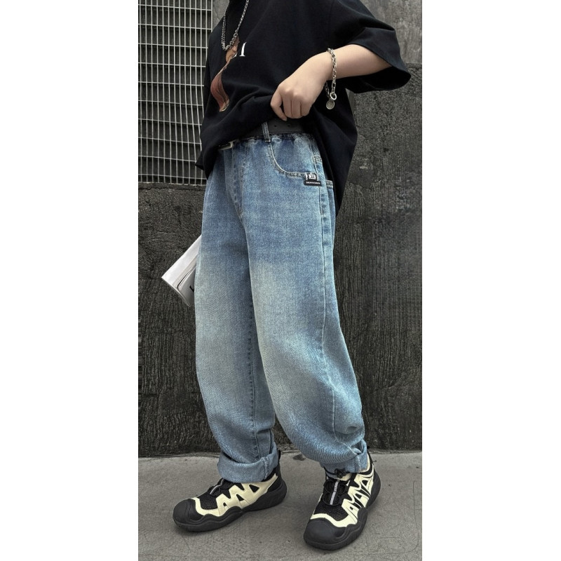 Джинсы Alder мом широкие для мальчика 7-12 лет багги , Голубой 128
