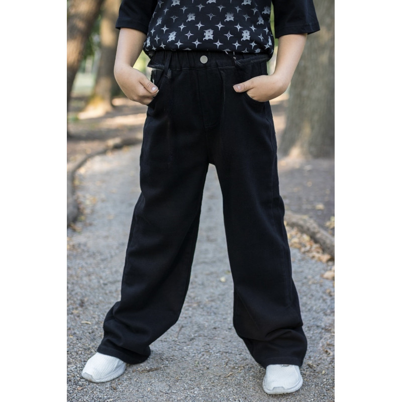 Джинсы JDYZ багги широкие для мальчика 8-13 лет , Черный 158