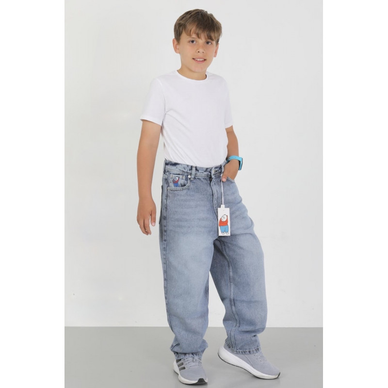 Широкі джинси скейтри для хлопчика підлітка, юніора — з принтом на передній кишені Опис товару: Модні молодіжні джинси скейтри — ідеальний вибір для активного підлітка. Стильний вільний крій baggy забезпечує повний комфорт і свободу рухів щодня. Виготовлені зі щільного та зносостійкого деніму, який добре тримає форму та підходить для повсякденного носіння. Особливість моделі — оригінальний принт на передній кишені, який підкреслює індивідуальність і робить образ виразнішим. Переваги: Вільний молодіжний фасон (скейтерський стиль) Щільна та якісна джинсова тканина Стильний принт на передній кишені Глибокі зручні кишені спереду та ззаду Пояс на ґудзику з петельками для ременя Підходять для хлопчиків 10-16 років Відмінно поєднуються з худі, футболками, світшотами Ідеальні для школи, прогулянок та активного відпочинку Колір: класичний джинсовий (можна уточнити: синій/світло-блакитний/графіт) Стать: хлопчик, підліток, юніор Сезон: демісезон/весна-осінь/сезонні