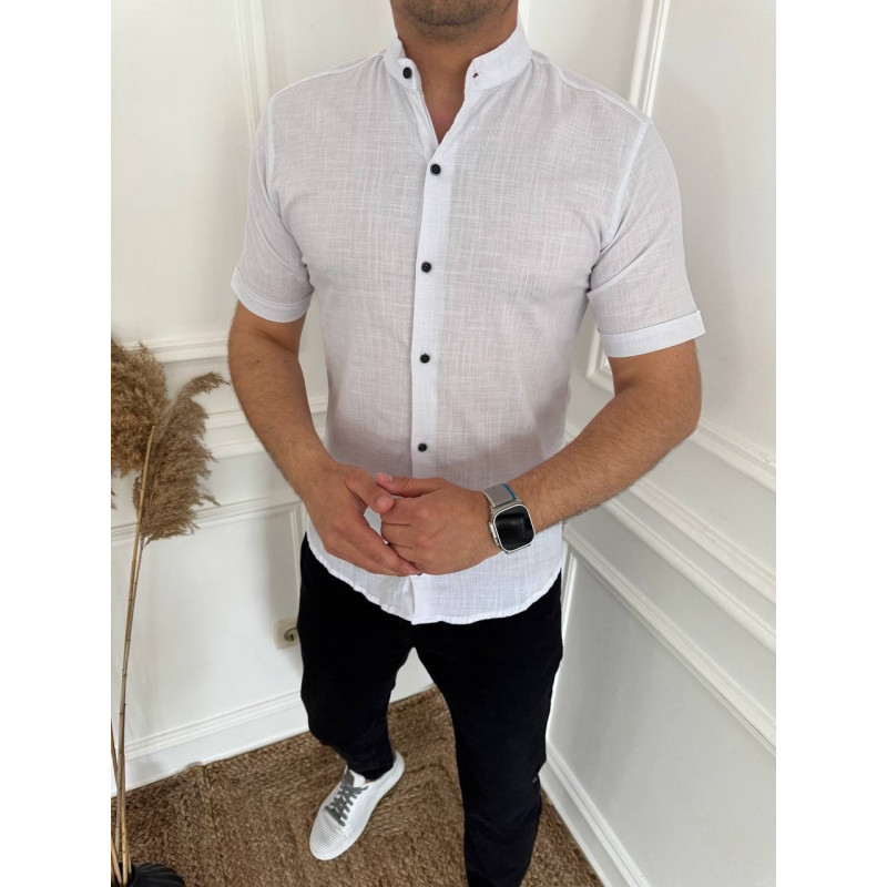 Рубашка  мужская Varetti лен с коротким рукавом S-XXL , XXL, Белый