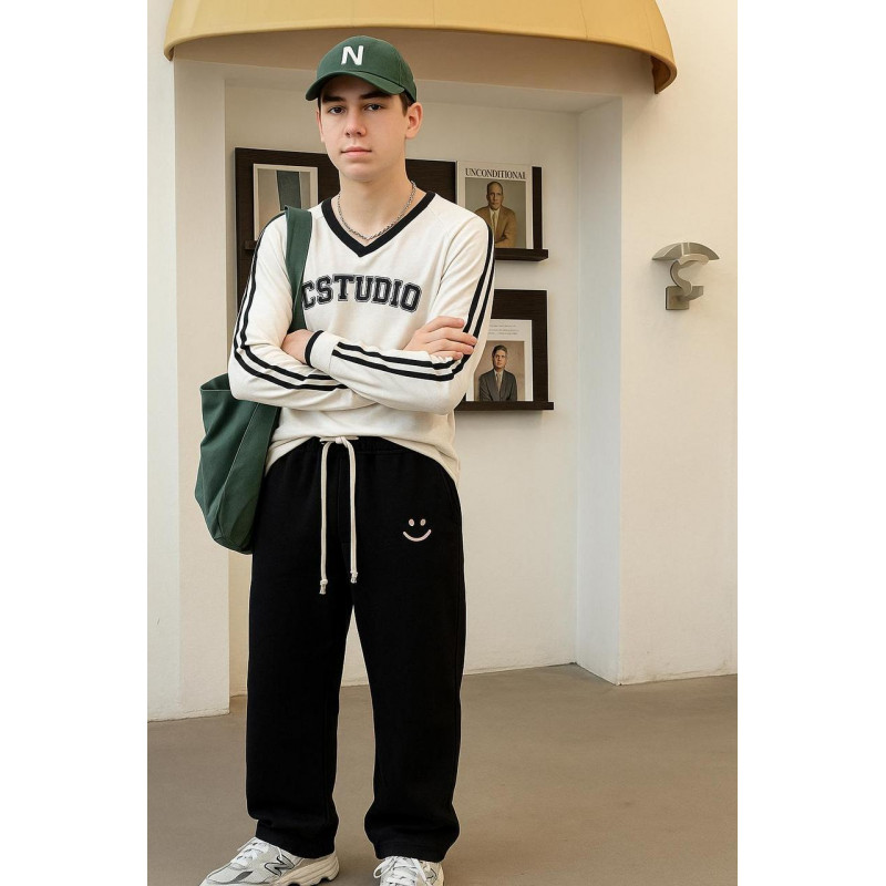 Спортивні штани баггі Alder — комфорт і стиль для підлітків. Модель вільного крою виготовлена з м’якого трикотажу на основі бавовни з додаванням еластану — приємна до тіла, добре тягнеться й не сковує рухів. Штани підходять для щоденного використання, прогулянок, школи або активного відпочинку. Пояс на резинці з регульованим шнурком забезпечує зручну посадку. Мінімалістичний принт у вигляді смайлика додає модний акцент. Переваги: Вільний крій у стилі баггі Трикотажна тканина: бавовна + еластан Еластичний пояс зі шнурком Універсальний чорний колір Підходять для підлітків спортивніштанипідліток,штанибаггіпідліткові,чорніспортивніштани,трикотажніштанипідліток,широкіштанипідліток,підлітковіштанибавовна,штанинарезинціхлопчику,підлітковіштанибаггі,модніспортивніштани,штанизусмішкою,брюкипідлітковітрикотажні,повсякденніштанихлопчику,баггіспортивніпідліток,брюкитрикотажпідліток,спортивнібрюкивільні,одягдляпідлітківхлопців,підлітковіштанинащодень,чорніштанихлопчику,Alderпідлітковіштани,брюкипідліткубавовняні