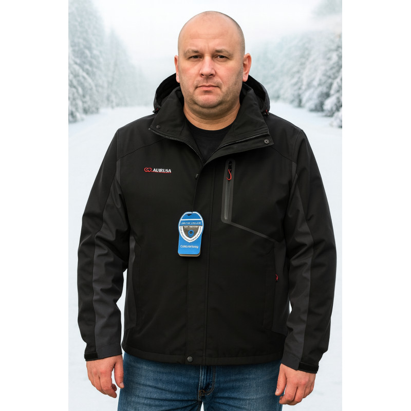 Мужская термокуртка Audsa демисезонная из мембранной ткани, большие размеры 2XL–6XL, Черный, 4XL