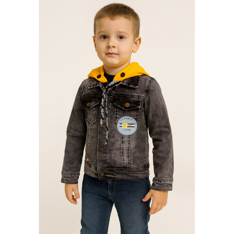 Лёгкая детская джинсовая куртка Panda Brooklyn с капюшоном, Турция, 4–10 лет,140, Серый с желтым