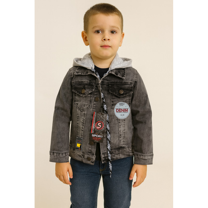 Лёгкая детская джинсовая куртка Panda Brooklyn с капюшоном, Турция, 4–10 лет,104, Серый