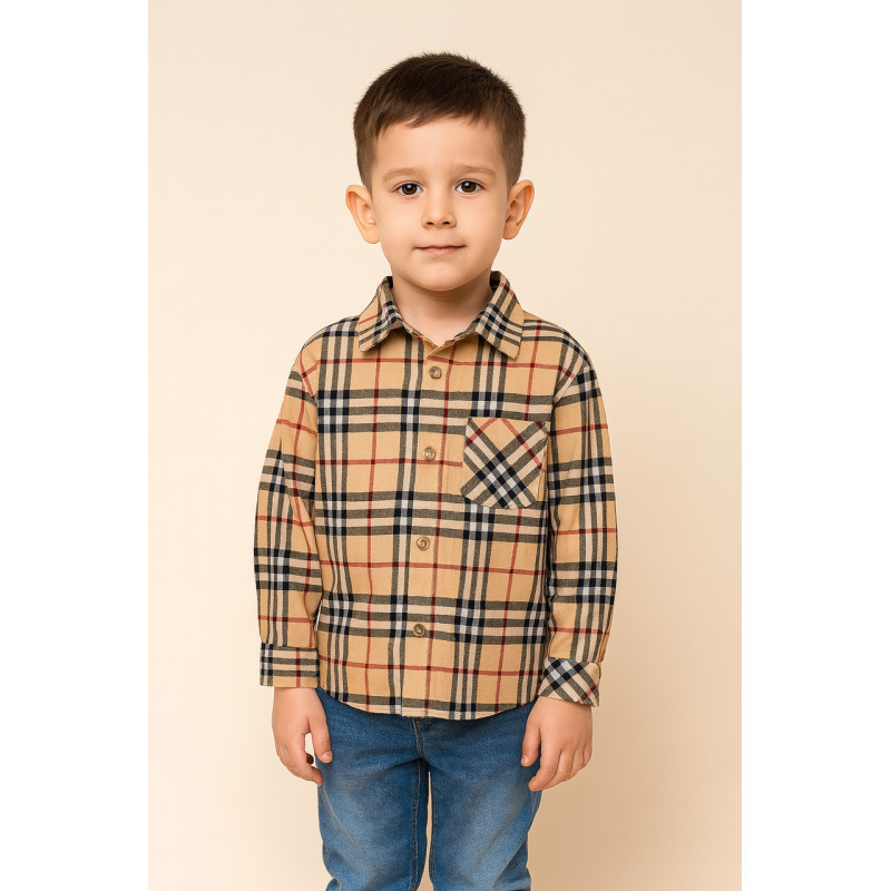 Рубашка байковая для мальчика 5–9 лет, оверсайз, свободный крой,116, Бежевый