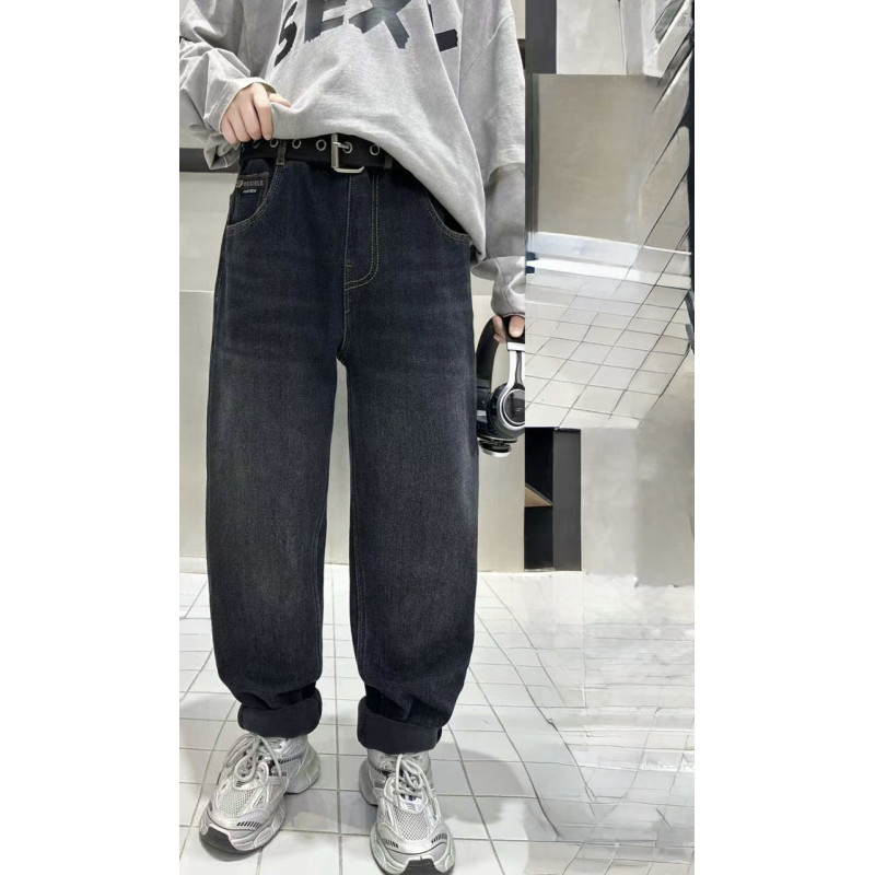 Джинсы LNYB мом теплые широкие скейтеры для мальчика 11-17 лет, на флисе,Темно-синий 158