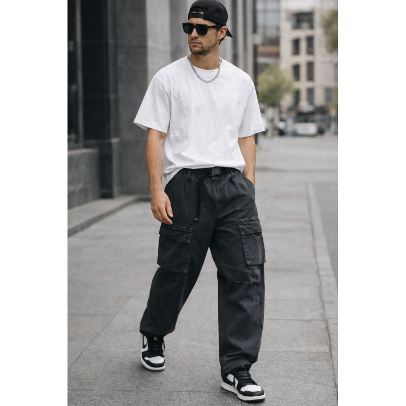 Мужские штаны Iteno багги карго широкие 100% хлопок уличный стиль размеры 29–36,34, Графит