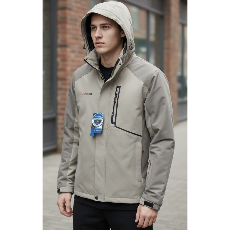 Термокуртка мужская Audsa мембранная демисезонная с капюшоном большие размеры водонепроницаемая,Светло-серый, XXL
