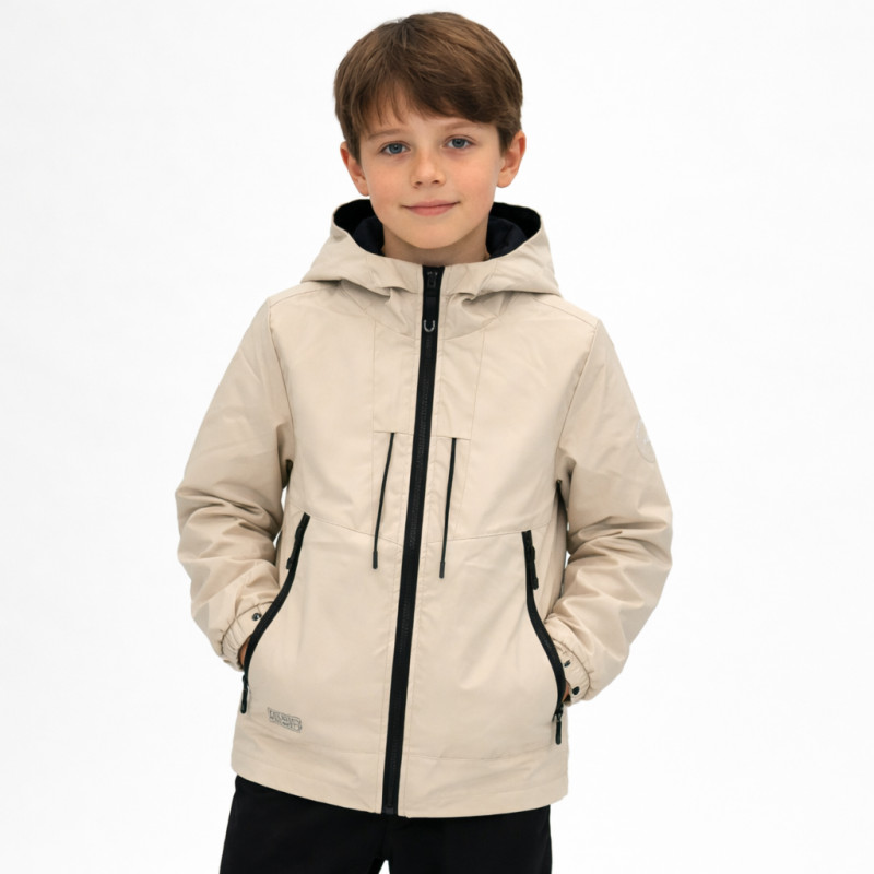 Куртка ветровка детская для мальчика Happy House демисезонная с капюшоном водоотталкивающая 5–14 лет,Бежевый, 158