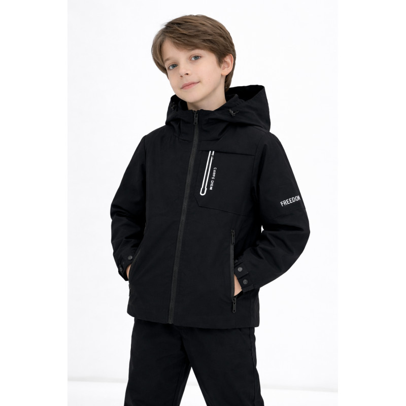 Куртка демисезонная для мальчика Happy House 4-10 лет с капюшоном весенняя осенняя,110, Черный