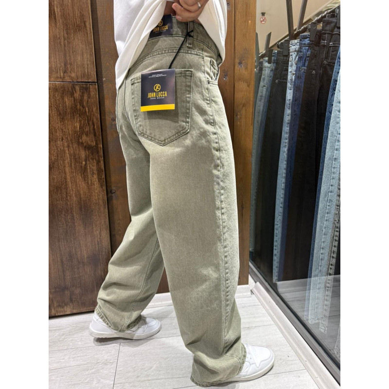 Джинсы мужские John Lucca багги широкие 100% хлопок Турция уличный стиль, 33  Оливковый