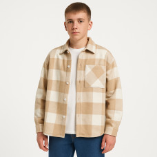 Рубашка подростковая оверсайз кашемир тёплая шерстяная 10-16 лет , Бежевый ,164