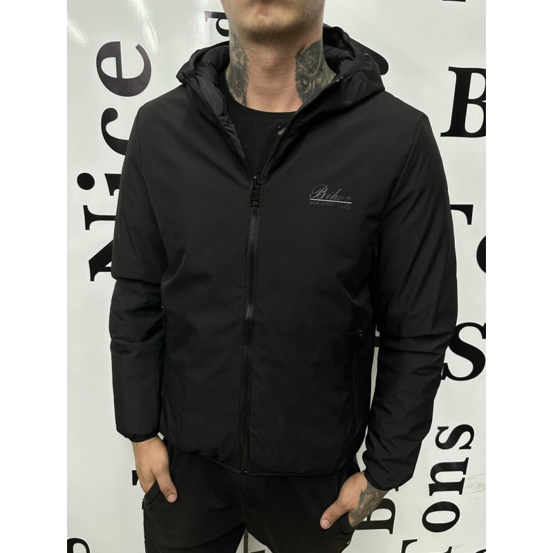 Крута молодіжна модель двосторонньої куртки для чоловіків. Купити демісезонну куртку для чоловіка можна у нас в один клік. Розміри від 44 по 54. Куртка з одного боку рівна, з іншого стьобана спортивна чорного кольору, з манжетами на рукавах і внизу .Туреччина.Маломірити на один розмір.