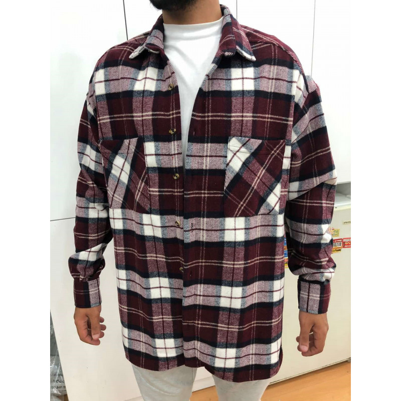 Рубашка теплая мужская VARETTI Оверсайз , L, Бордовый