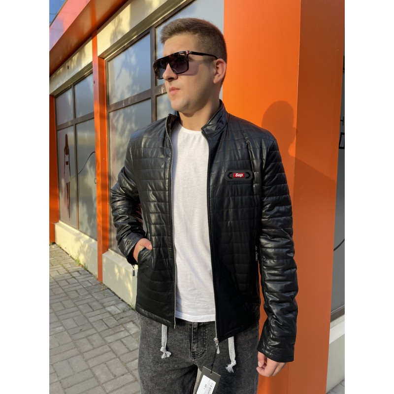 Шкіряна весняна чоловіча куртка з екошкіри завжди має по-справжньому крутий вигляд. Щільний м'який матеріал, всі кармани на блискавках + два внутрішні кармани.