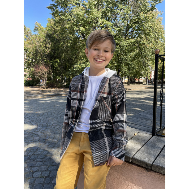 Стильна молодіжна сорочка оверсайз із м'якого кашеміру — ідеальний вибір для прохолодної погоди. Тканина приємна на ощупь, добре тримає форму та зберігає тепло. Вільний крій забезпечує комфорт та модний вигляд. Модель доповнена теплим білим капюшоном на флісі, що робить сорочку універсальною — її можна носити як верхній одяг у весняно-осінній сезон. Матеріал: кашемір, тепла тканина Капюшон: на білому флісі Стиль: оверсайз, вільний крій Виробництво: Туреччина Розміри повномірні Вік: 8–13 років