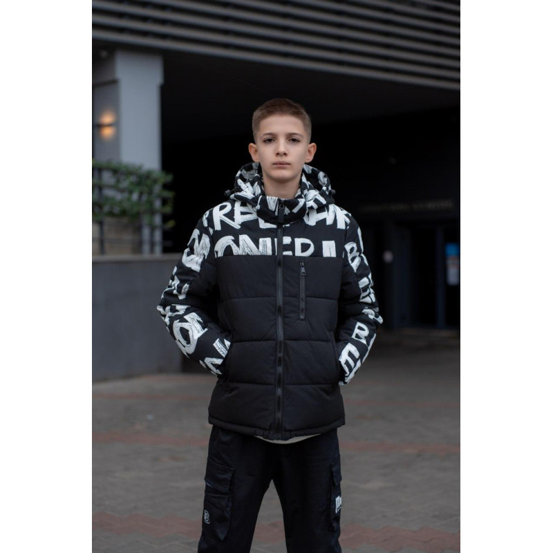 Куртка зимняя Bihor для мальчика 9-16 лет , Черный с белым, 164