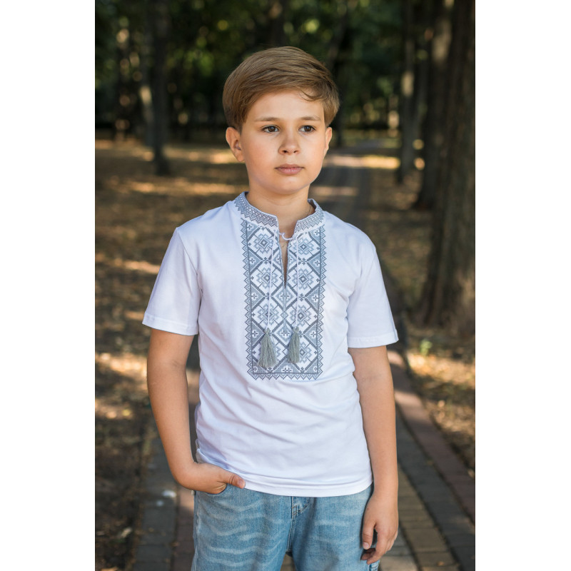 Вышиванка Kosar для мальчика 2-16 лет с коротким рукавом , 122,Белый с серым