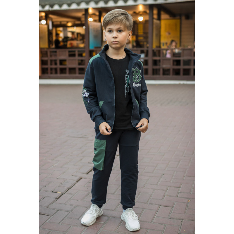 Костюм спортивный F&D для мальчика 7-15 лет стойка , Темно-синий 158