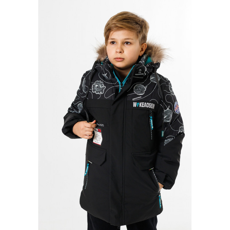 Куртка зимняя WKAS для мальчика 5-10 лет , Черный с бирюзовым, 134
