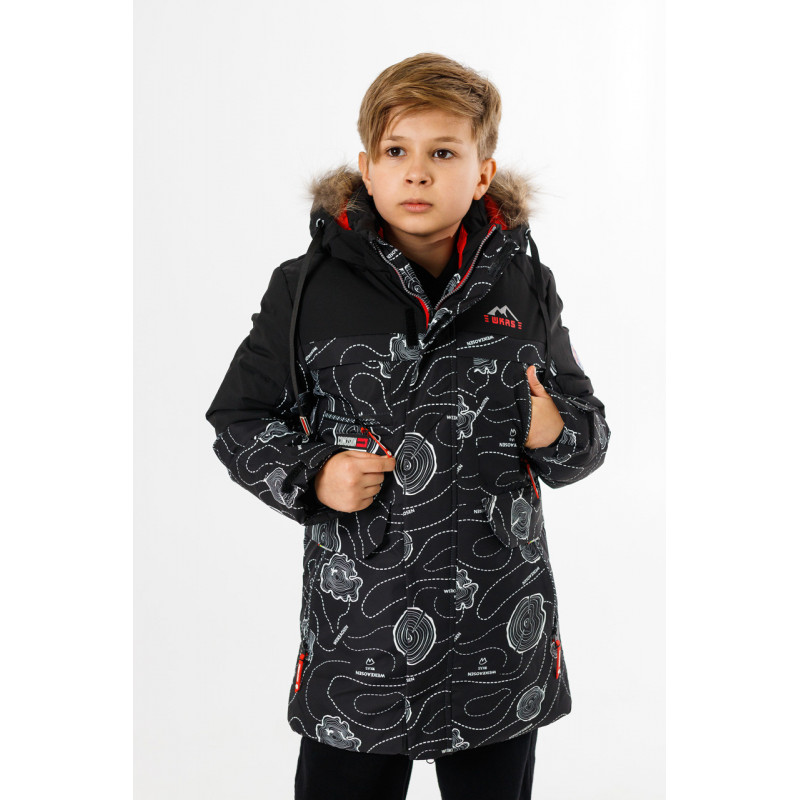 Куртка зимняя WKAS для мальчика 5-10 лет , Черный с серым, 134