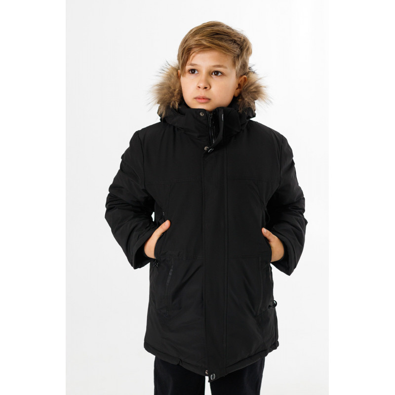 Зимова куртка-парку для хлопчика з натуральним мехом – ідеальний вибір для холодної пори року. Вона виготовлена ​​з високоякісного водовідштовхувального матеріалу, який захистить від снігу та дощу. Внутрішнє утеплення забезпечить тепло навіть у найморозніші дні, створюючи комфорт у будь-яку погоду. Капюшон з натуральним мехом не лише додає стиль, а й ефективно зберігає тепло, оберігаючи від вітру та холоду. Продуманий крій куртки та регульовані манжети дають змогу вільно рухатися, не обмежуючи активних ігор на свіжому повітрі. Великі та зручні кармани підійдуть для зберігання необхідних дрібниць та зігріють руки. Ця стильна та практична парку стане найнадійнішим супутником у зимових пригодах вашої дитини, забезпечуючи тепло та комфорт.
