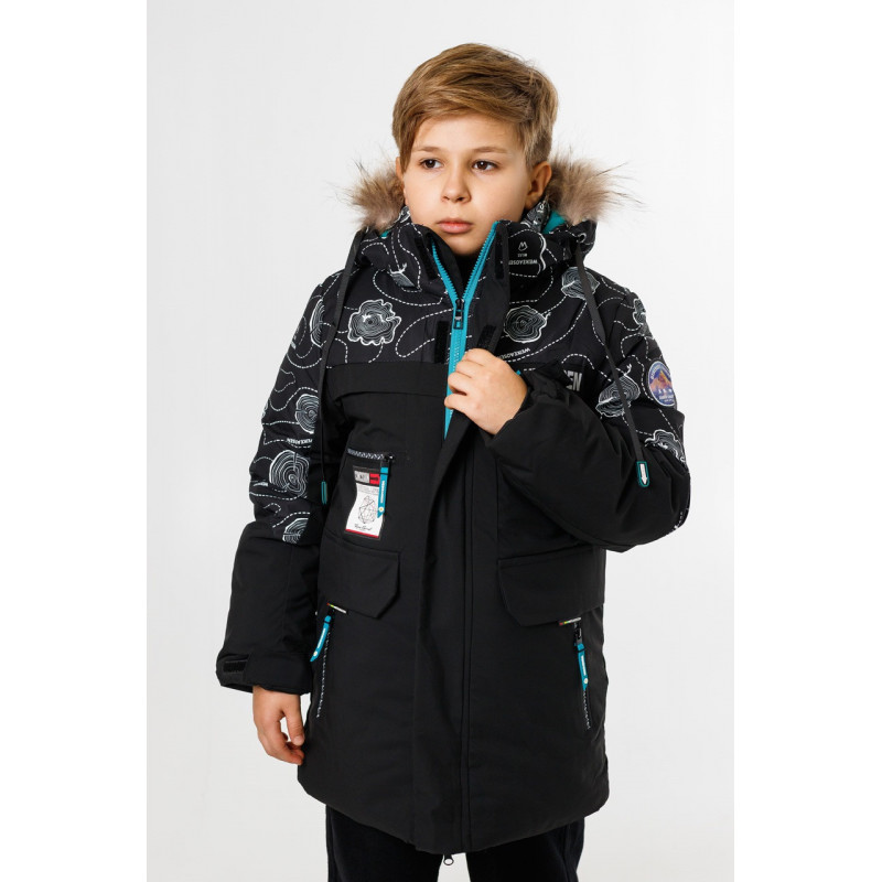 Куртка зимняя для мальчика 9-13 лет WKAS , Черный с бирюзовым, 134