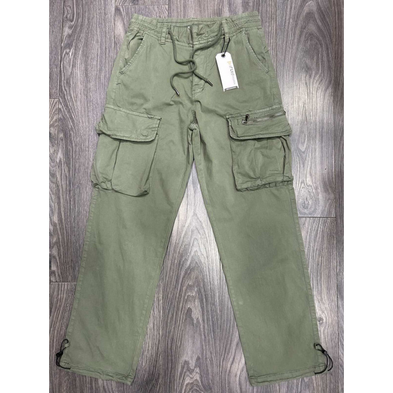 Мужские джинсы Iteno багги карго широкие коттон + эластан, уличный стиль, , 34, Зеленый