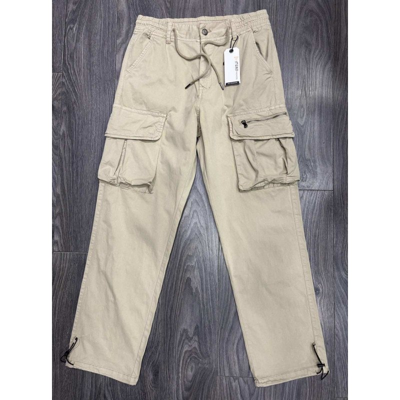 Мужские джинсы Iteno багги карго широкие коттон + эластан, уличный стиль, , 38, Бежевый