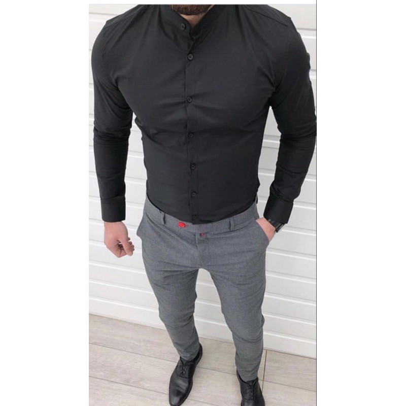 Мужская рубашка Varetti со стойкой, длинный рукав, молодежная хлопковая  , XL, Черный