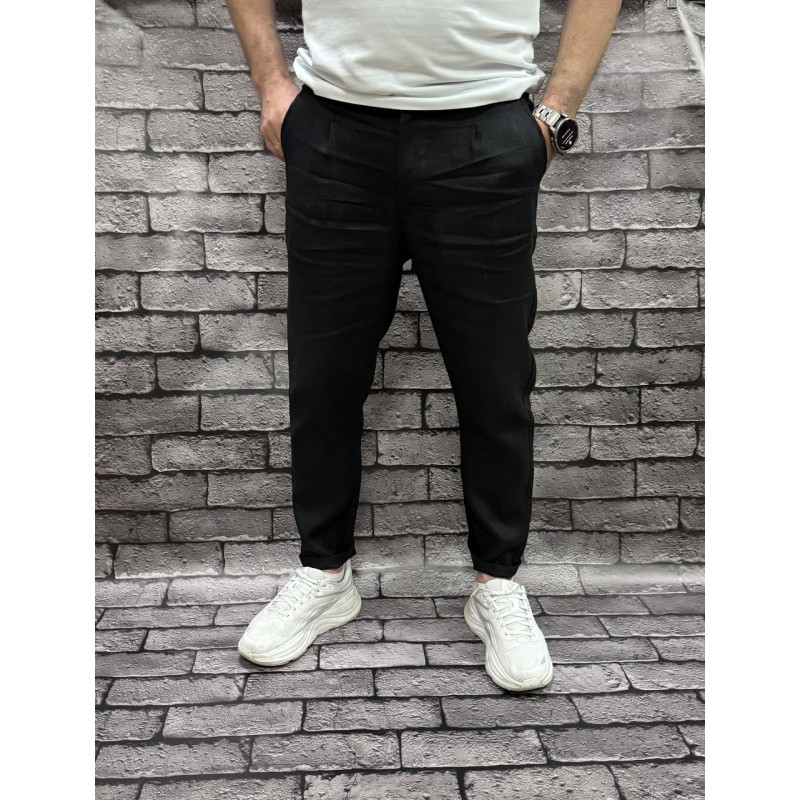 Льняные брюки бананы MOM Bromley Турция — молодёжные, укороченные с подкатами , 34, Черный