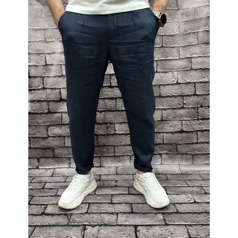 Льняные брюки бананы MOM Bromley Турция — молодёжные, укороченные с подкатами , 34, Синий