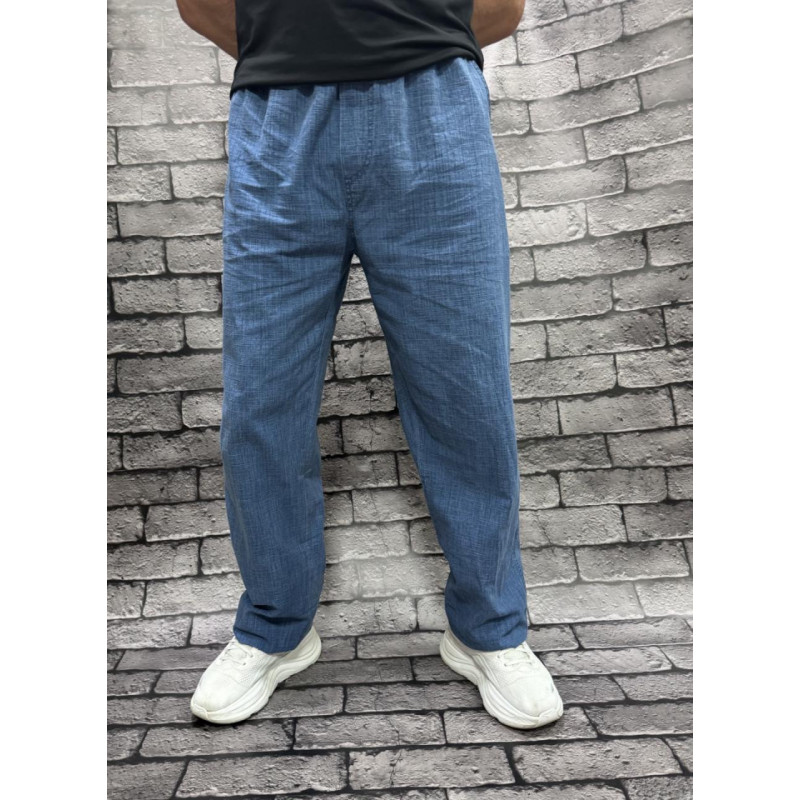 Мужские льняные брюки Ao Long — летние, хлопок, свободный крой, большие размеры, Турция , 34, Голубой