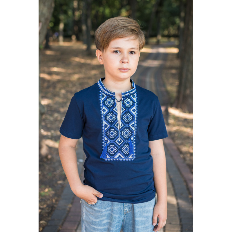 Вышиванка  Kosar для мальчика 2-16 лет с коротким рукавом, 140, Синий с белым