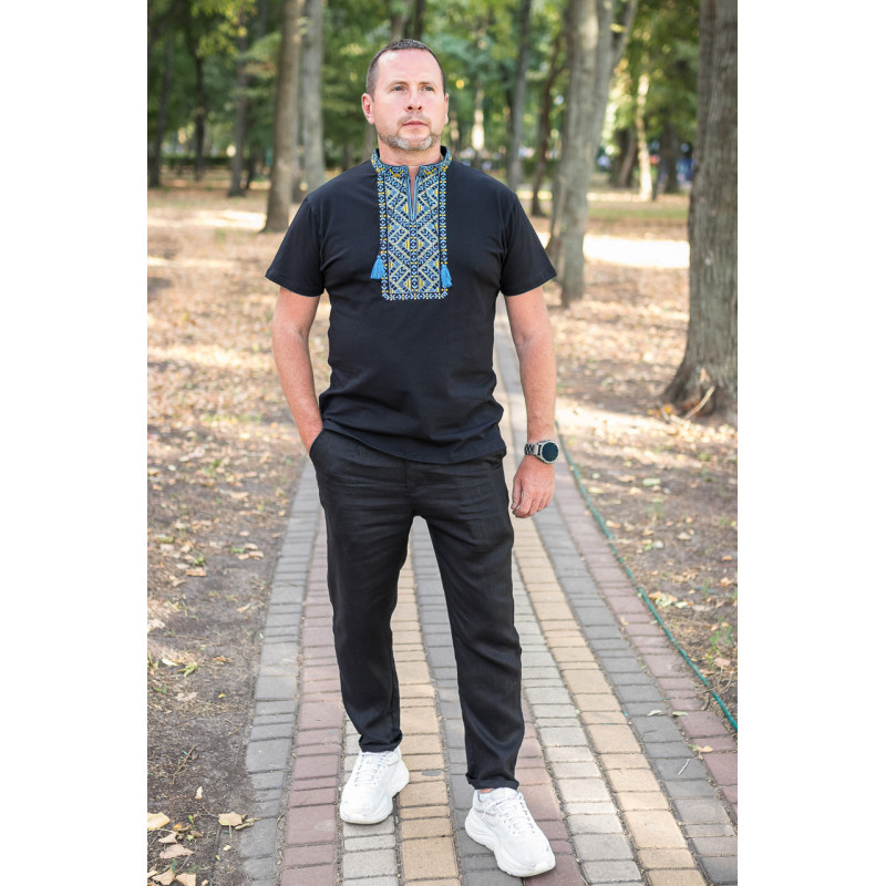 Мужская футболка-вышиванка тёмно-синяя с жёлто-синей вышивкой, Kosar ,M,Темно-синий