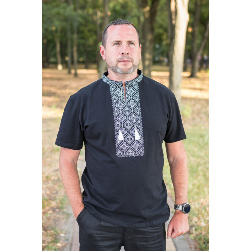 Мужская футболка-вышиванка Kosar с натуральной вышивкой, хлопок, M,Черный с серым