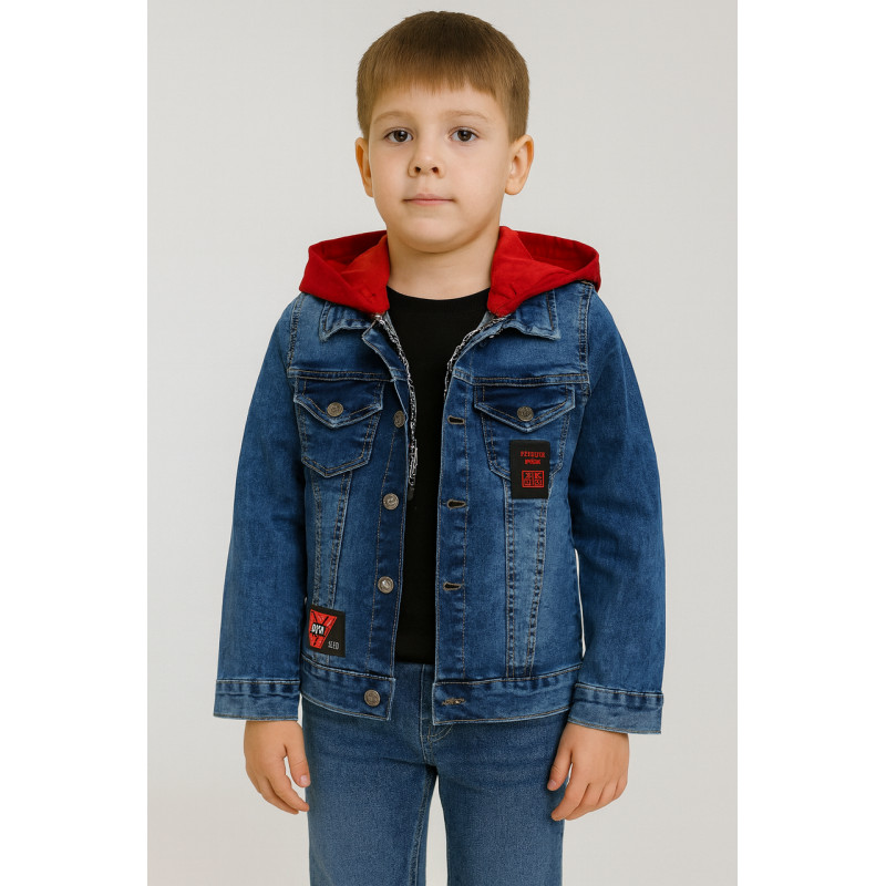 Лёгкая детская джинсовая куртка Panda с капюшоном, Турция, 4–10 лет,110, Синий с красным