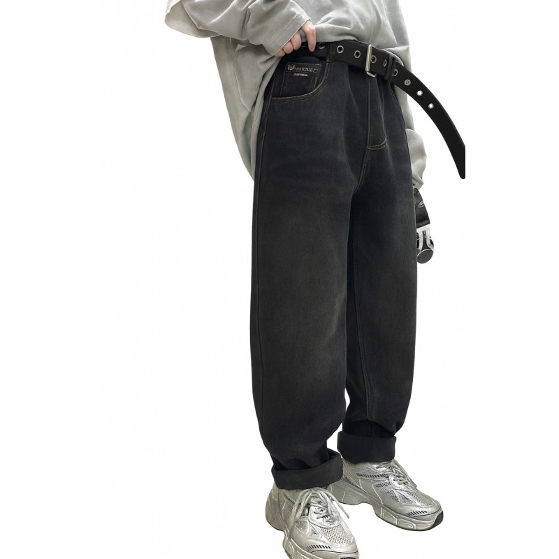Джинсы LNYB мом теплые широкие скейтеры для мальчика 11-17 лет, на флисе,Темно-серый 158