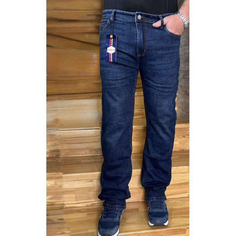 Джинси Aviwgos чоловічі теплі зимові на флісі всередині, прямі, щільний денім,34 Синій