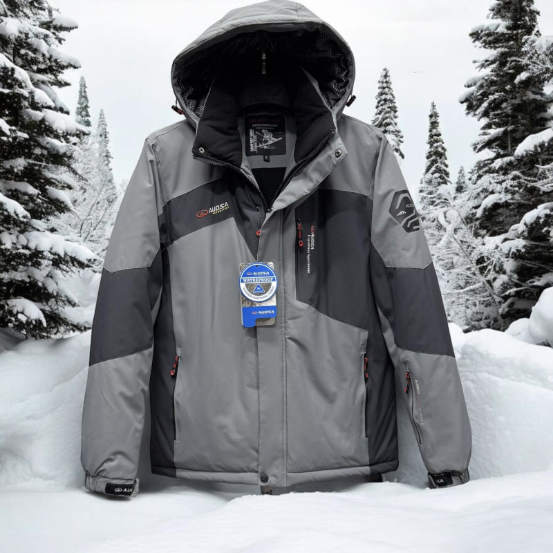 Тепла чоловіча зимова термокуртка Audsa розрахована на температуру до -25 °C. Зовнішня мембранна тканина не промокає та не продувається, забезпечуючи надійний захист від снігу та вітру. Куртка має глибокі водонепроникні кармани — три внутрішні, три зовнішні та одну на рукаві. Капюшон регулюється за об'ємом та за потреби відстібається. Ідеальна модель для активної зими – поєднує стиль, комфорт та практичність.