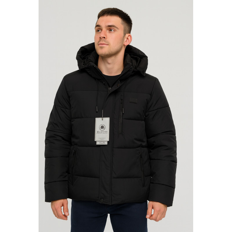 Куртка зимняя мужская M.A.D.I.S.S. короткая, двухцветная, с манжетами, тёплый холофайбер,Черный,M