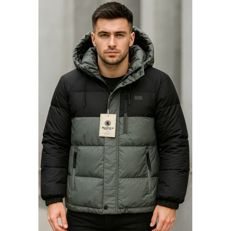 Куртка зимняя мужская M.A.D.I.S.S. короткая, двухцветная, с манжетами, тёплый холофайбер,Серый,S