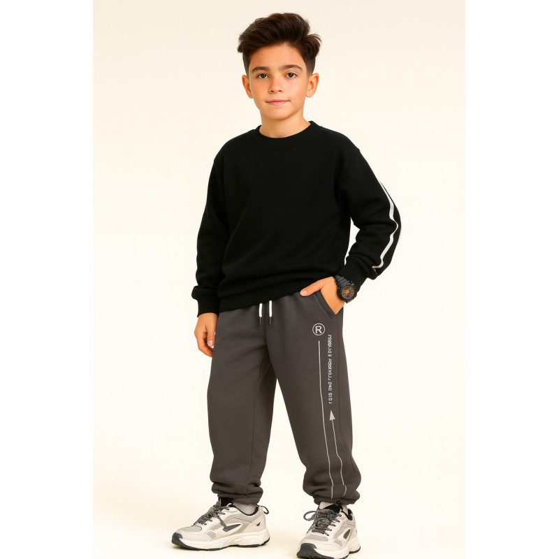 Теплі спортивні штани SNP для хлопчика 10-14 років - стильна широка модель у форматі баггі/скейтер. Всередині м'який фліс, який надійно зберігає тепло зимою і холодною осінню. Ніжки мають шнурок унизу - можна затягнути під кросівки або залишити прямими. Штани мають вільний комфортний крій, щільну тканину, глибокі кармани та м'який пояс на шнурку. Ідеально підходить для школи, прогулянок, активних ігор, скейтбордингу та повсякденного підліткового стилю. Універсальна тепла модель для зими та холодної пори року.